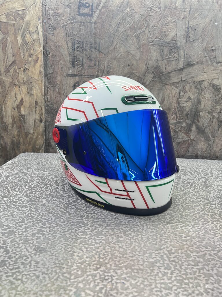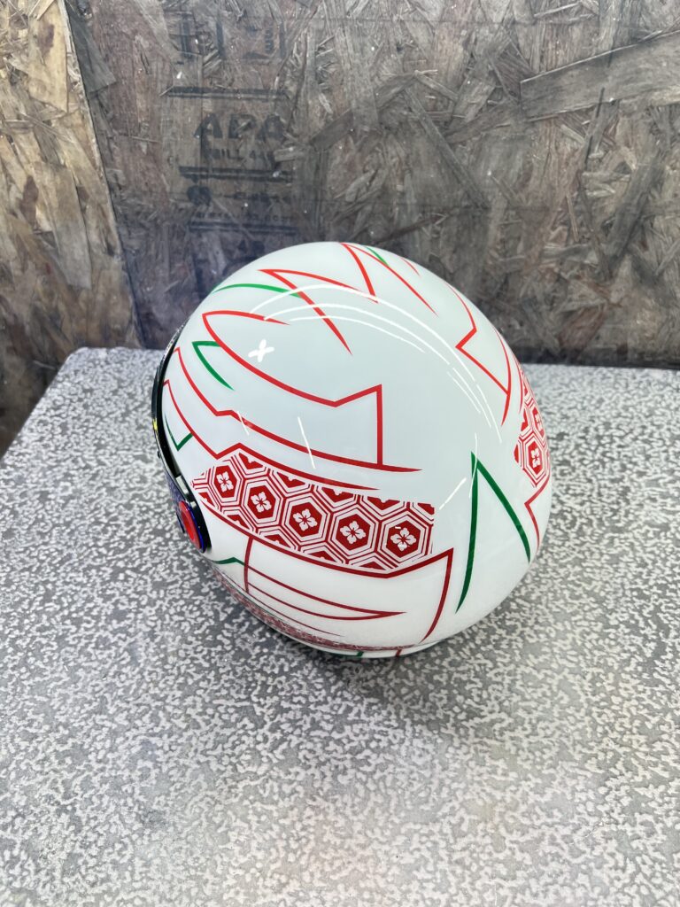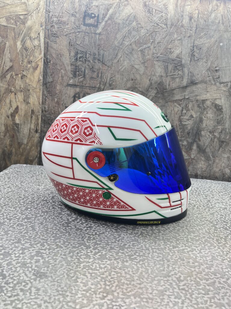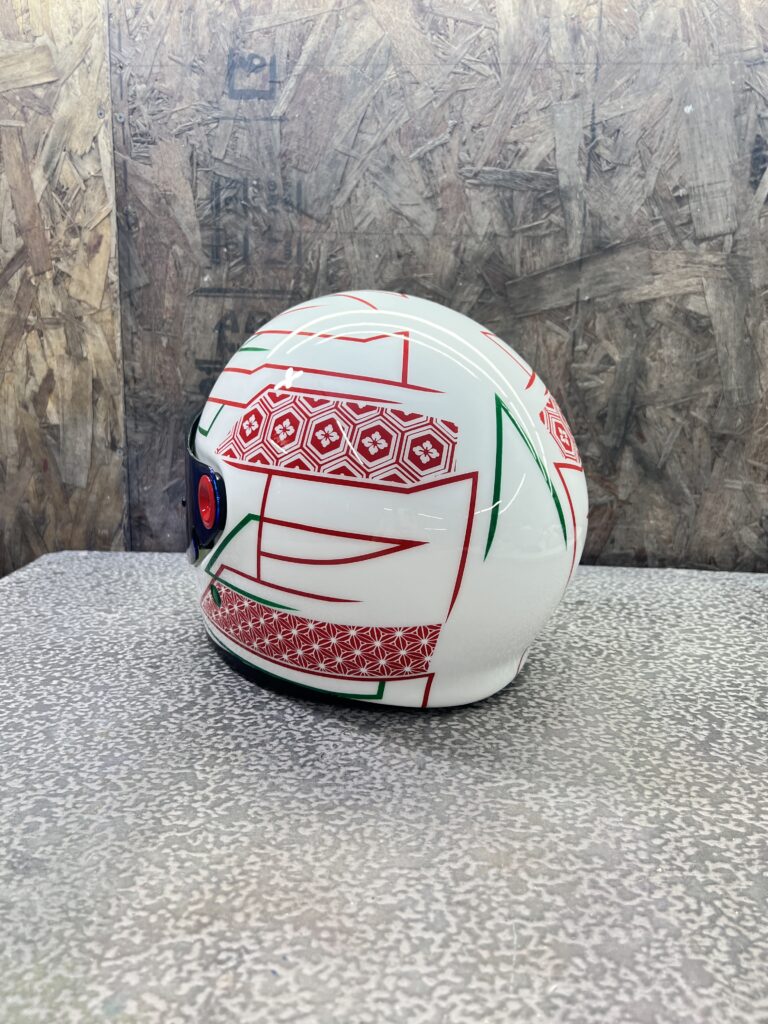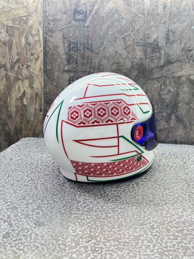 今回は白、赤、緑を使用してお任せデザインでフルフェイスの塗装をさせていただきました(^^)
